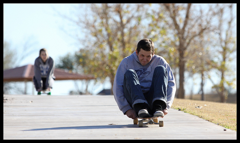 Two of my children, Kyle and Angela use their longboards to take on the sidewalks of Discovery Park in Gilbert. They are always looking for some way to have a little fun. The long sloping sidewalks make a great place for longboarding when it's not too crowded. They had already been boarding for quite a while when I stopped by to see what they were up to. They apparently were "tired" so they decided to sit down on their boards and rest all the while continuing to go down the hill.