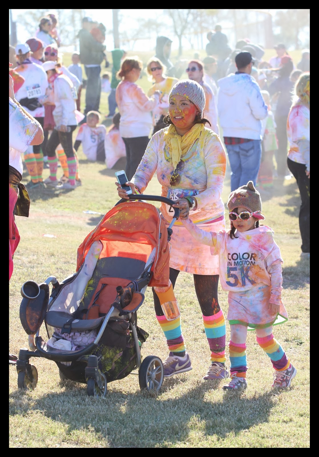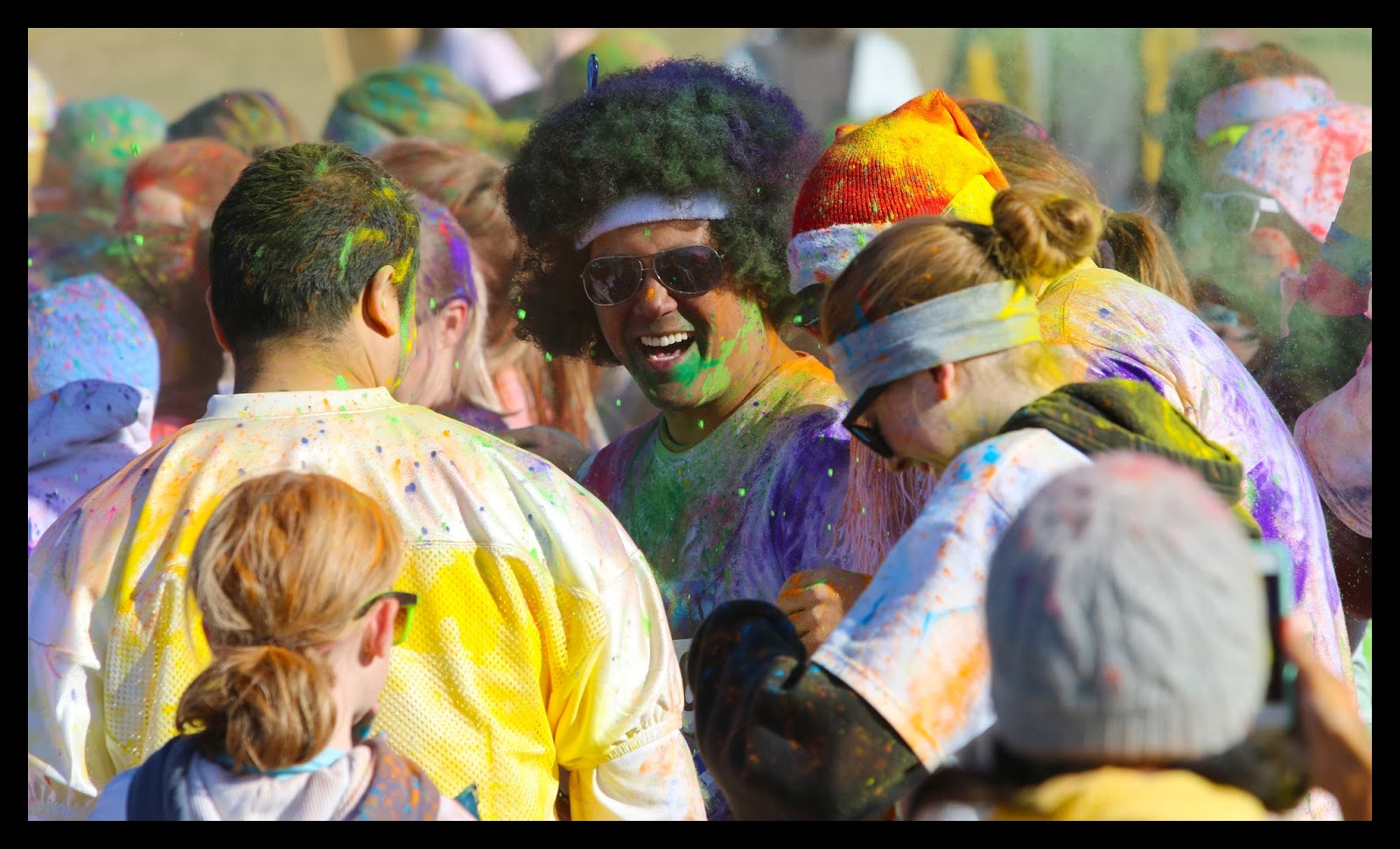 I arrived as many of the participants were crossing the finish line. The organizers had a stage setup with music playing. I was a natural gathering location where more color packets were passed out to the crowd to do with as they please. It was a grand finale with energy and a good dose of color for everyone. They were all having a great time. It was pretty much head to toe color for the crowd.