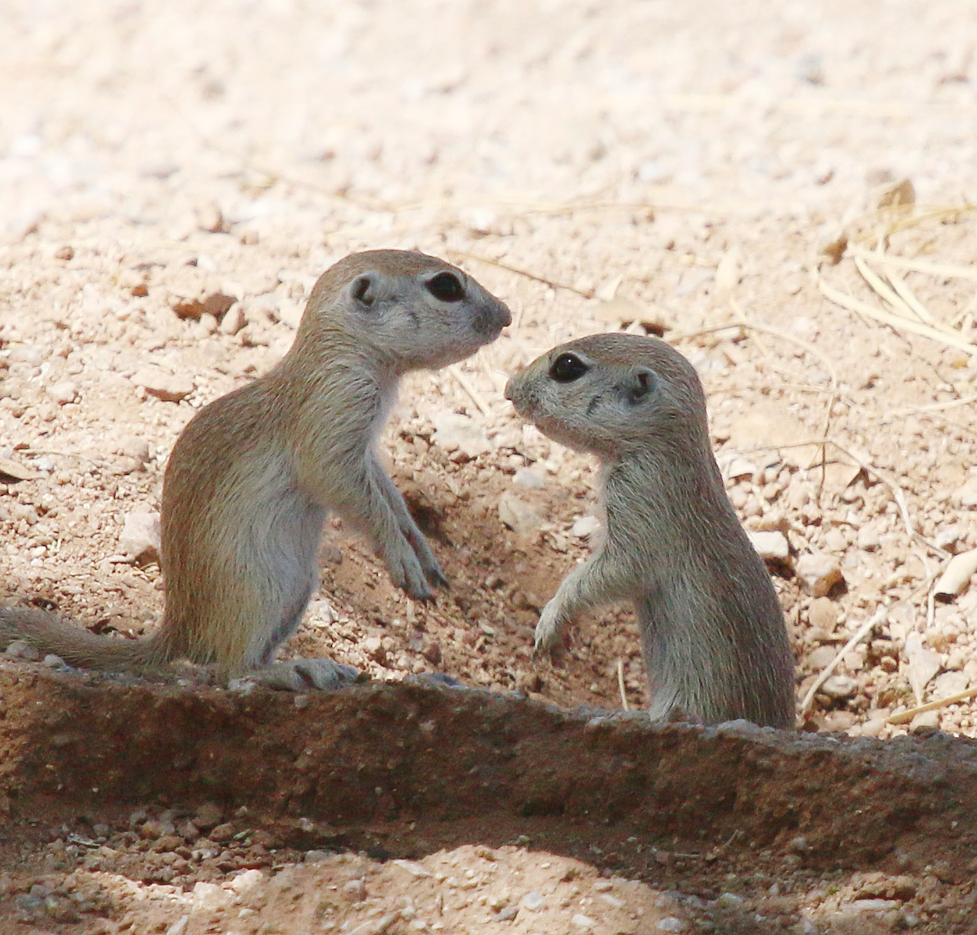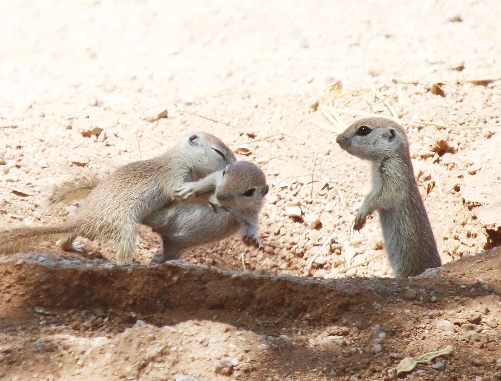 Playful young ground squirrels wrestle around the opening of their burrow with a 2 point takedown in the last frame. Google tells me these are Round-tailed Ground Squirrels. Mesa Arizona.